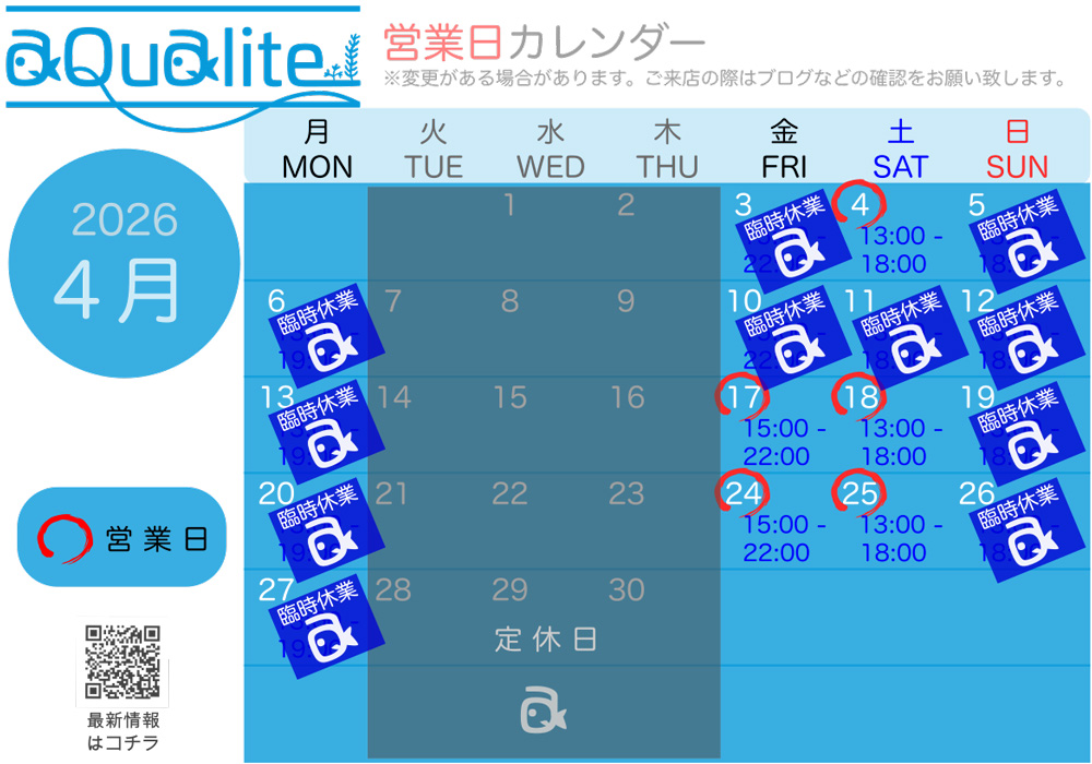 先月お伝えしたとおり、、、と言いたいところですが、結局4月は今までと変わらず「金・土」営業のスタイルで行こうと思います。(謝罪)